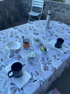 Les petits déjeuners sur la terrasse ou dans notre cuisine à l’intérieur