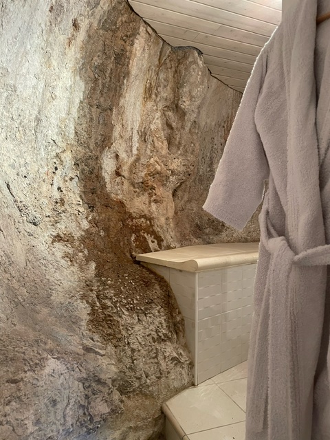 Une confortable chambre avec une literie neuve et de qualité, des draps, du linge de toilette et des peignoirs, une grande douche dans la falaise et un sèche cheveux, sont à votre disposition. Un accès wifi, un abri pour vélo, une cuisine d’été avec un barbecue à charbon, une bouilloire électrique et une cafetière à discrétion.